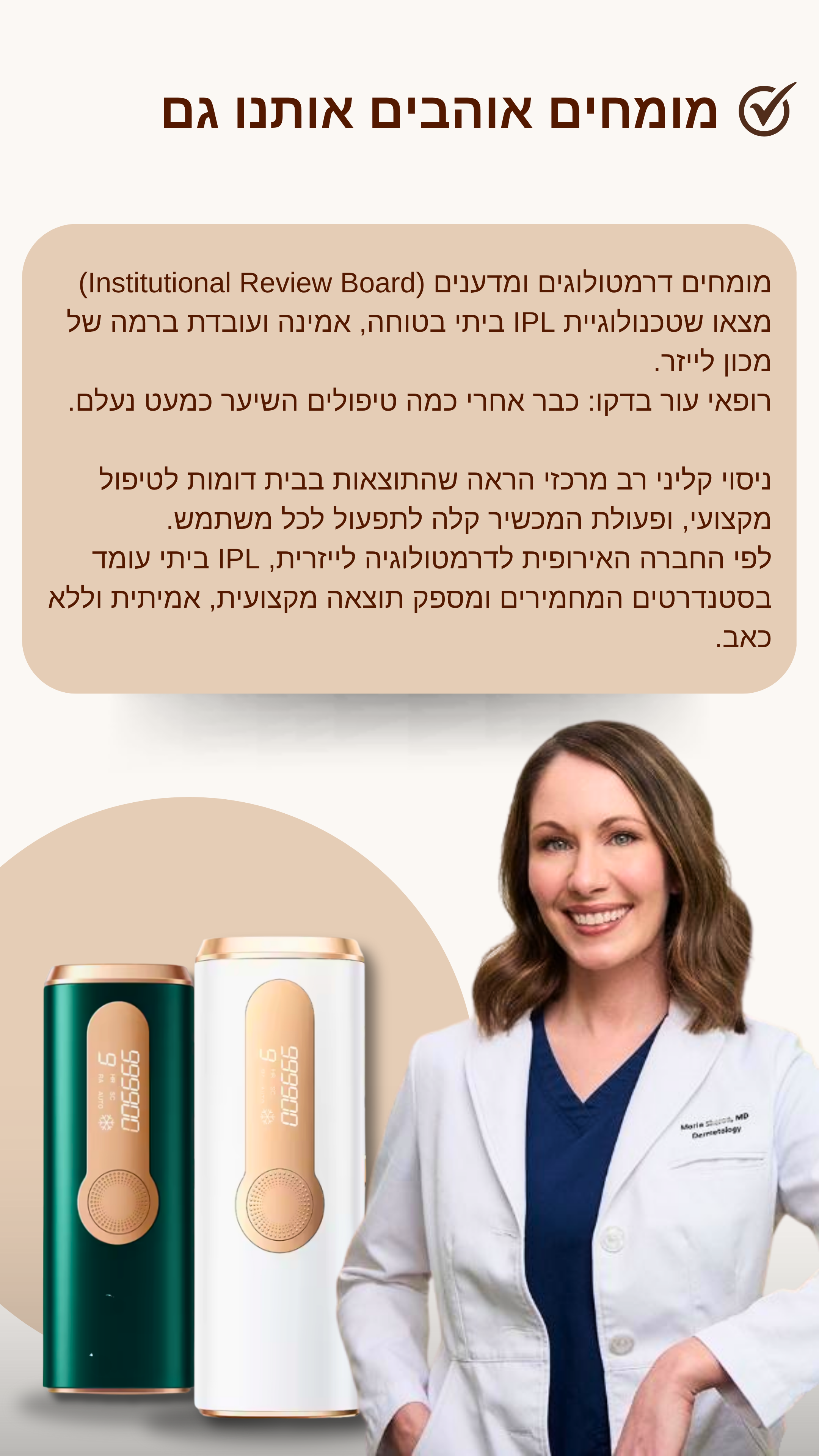 טכנולוגיית IPL היא שיטה מוכחת ומגובה במחקרים להסרת שיער בצורה בטוחה, יעילה וארוכת טווח.
