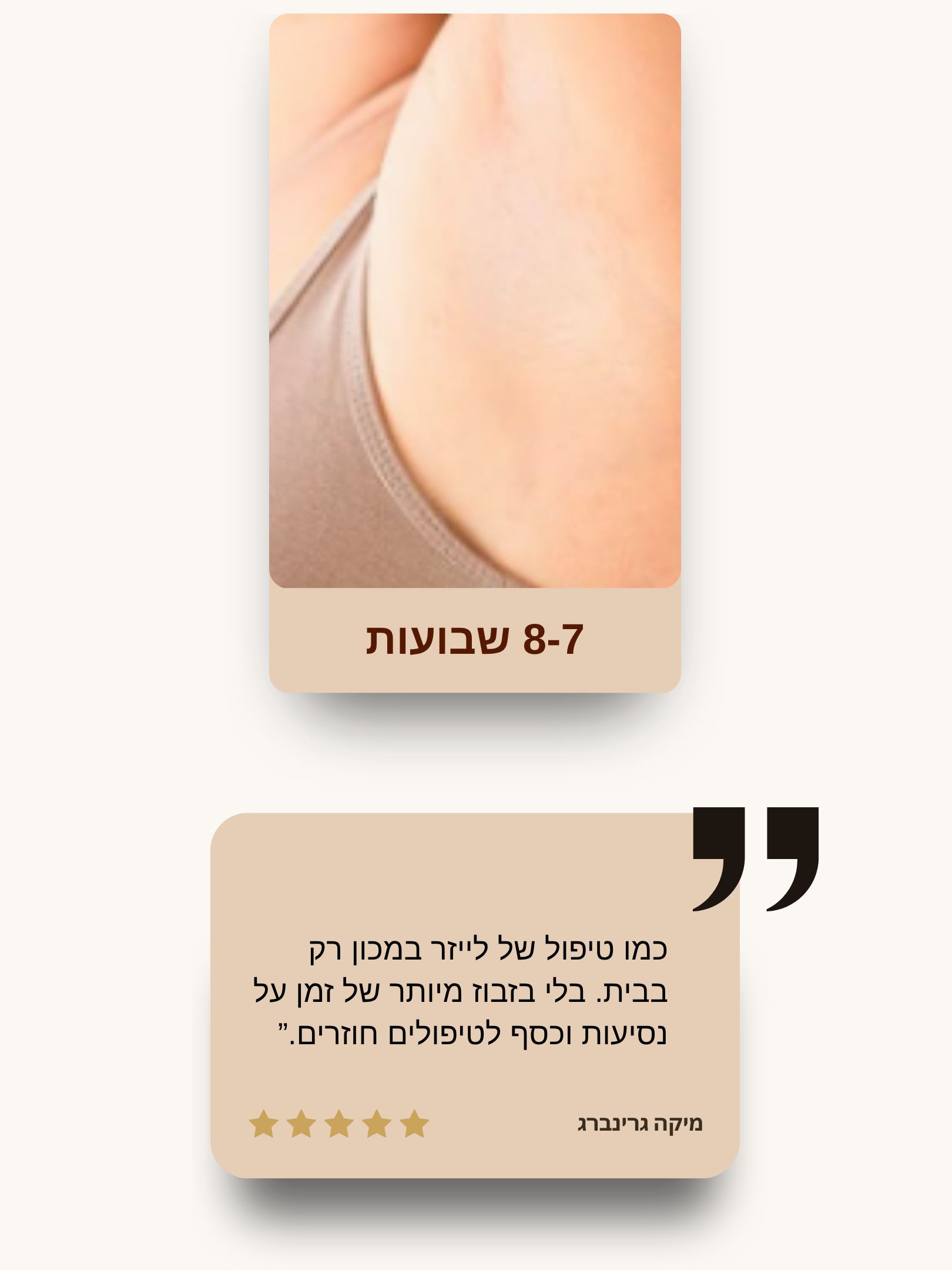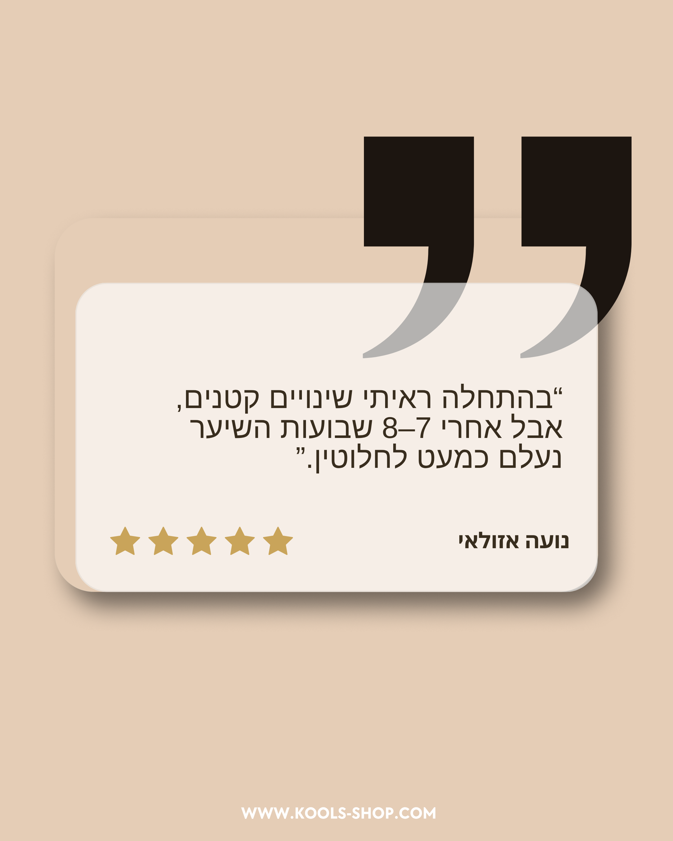 רוב המשתמשים מדווחים על ירידה בהיקף השיער כבר אחרי 3–4 טיפולים, ותוצאות כמעט מושלמות לאחר 8 טיפולים.
